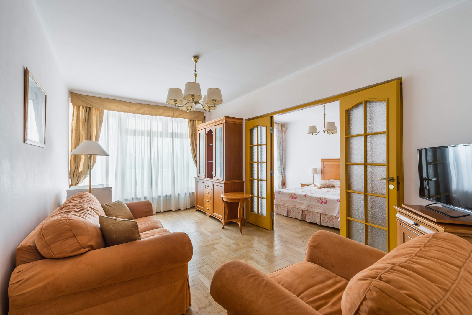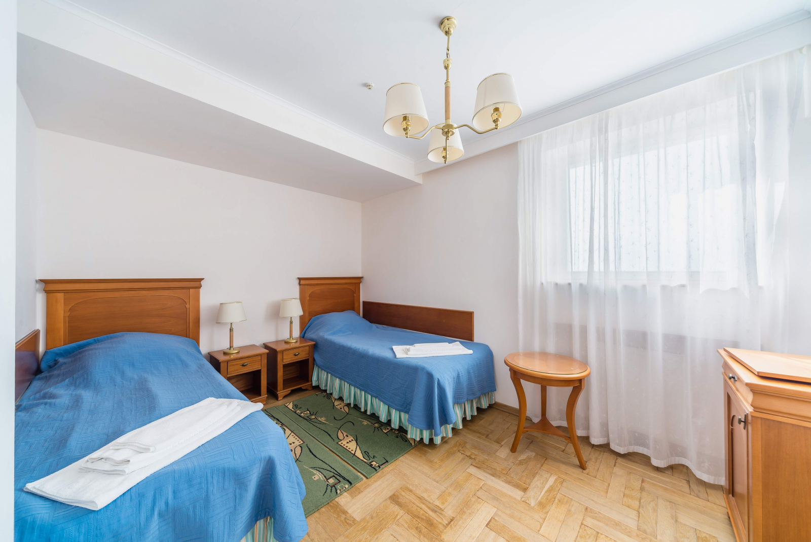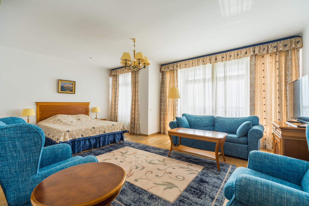 Площадь номера - 50 кв.м. 2 осн. места. 3 доп. места. Балкон. Мебель: вешалка, диван раскладной, зеркало, кровати односпальные, кровать двуспальная, прикроватные тумбочки, стол, стул, шкаф-купе. Оборудование: кондиционер, сейф, телевизор ЖК, холодильник. Санузел: с душем, тапочки, туалетные принадлежности, фен, халат. Сервис: Wi-Fi бесплатно, смена полотенец, смена постельного белья, уборка номера.