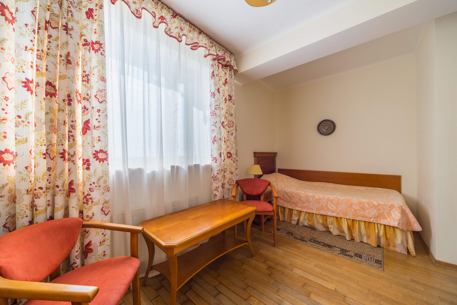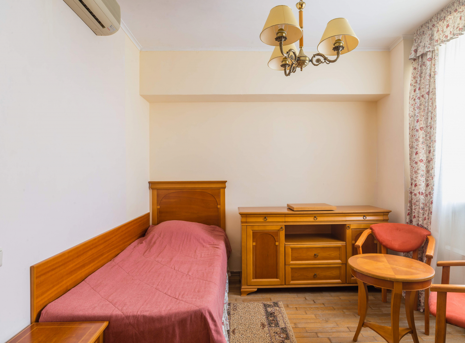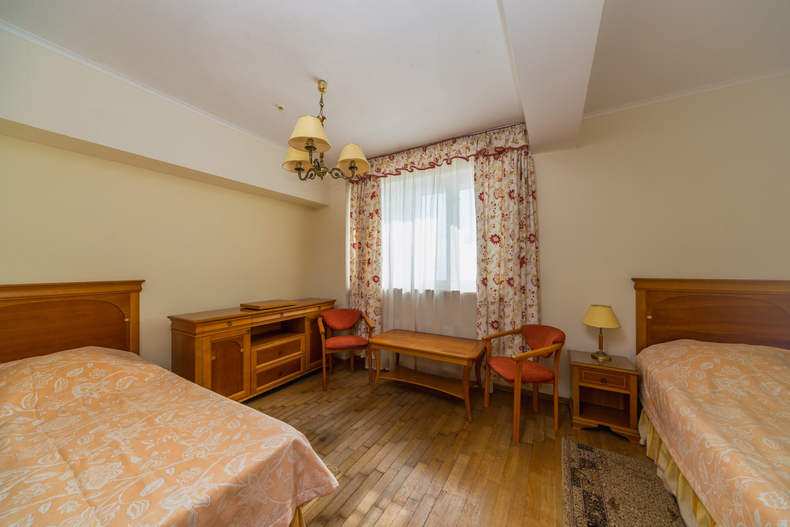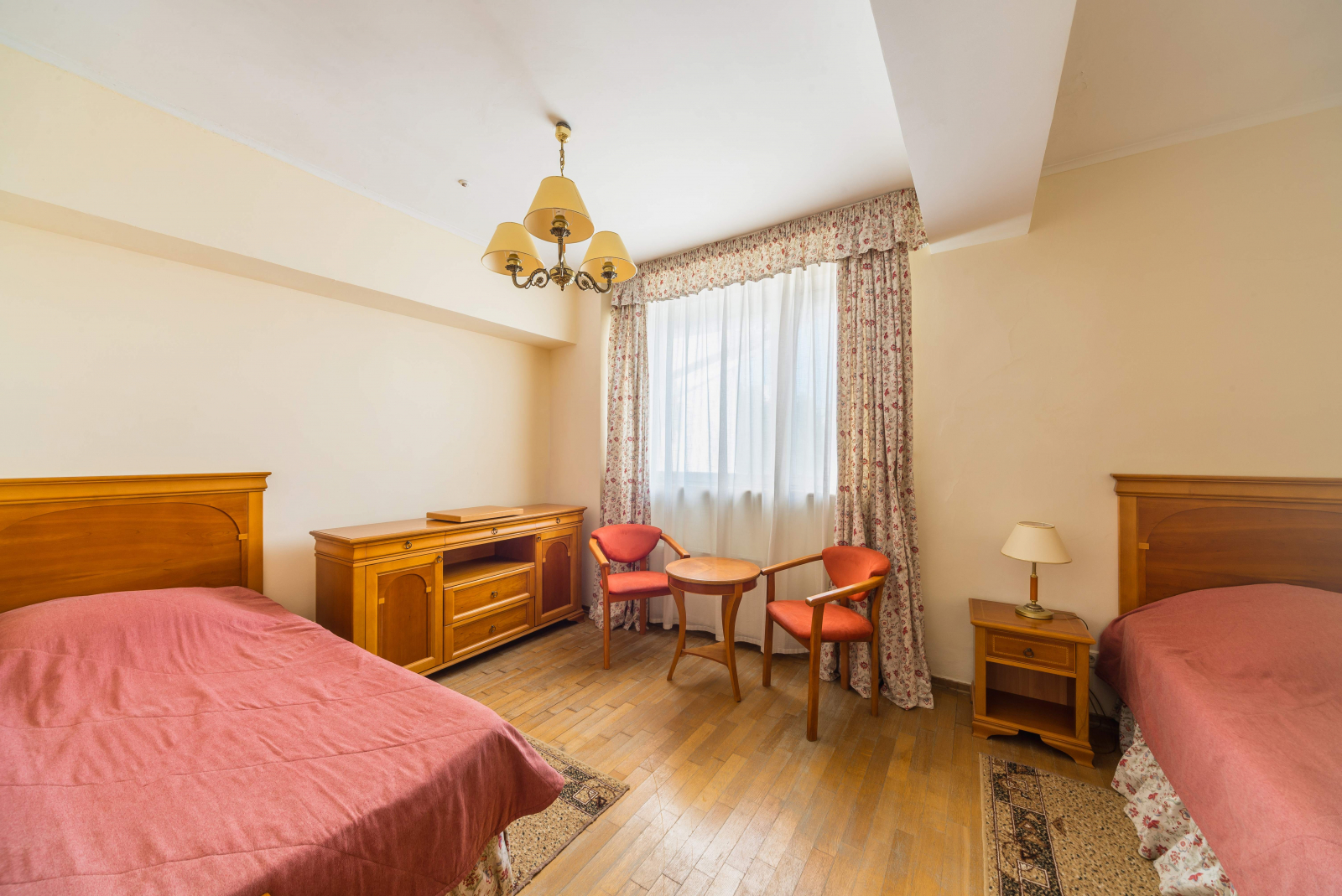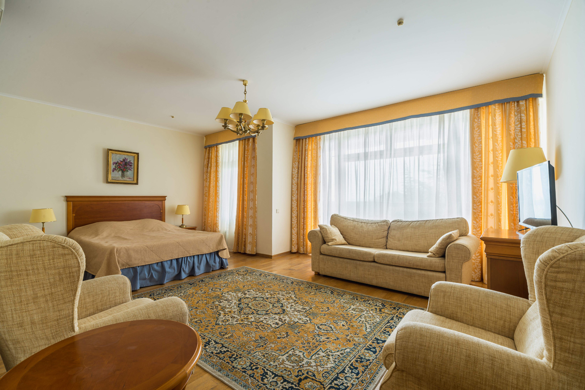 Площадь номера - 50 кв.м. 2 осн. места. 3 доп. места. Балкон. Мебель: вешалка, диван, зеркало, комод, кресла, кровати односпальные, кровать двуспальная, прикроватные тумбочки, столик журнальный, столик туалетный, стулья, шкаф-купе. Оборудование: кондиционер, сейф, телевизор ЖК, холодильник. Санузел: с душем, туалетные принадлежности, фен, халат. Сервис: Wi-Fi бесплатно, смена полотенец, смена постельного белья, уборка номера.